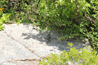 Imidlertid indtrådte en åbning onsdag 2016-06-01. Mine kollegaer blev trætte af min døsige tilstand og spurgte hvorfor jeg ikke bare tog en feriedag og fik det overstået? Joh, måske, kunne det lade sig gøre? Efter en gennemgang af vagtplan og opgaver fik vi det ordnet, så jeg fik en feriedag dagen efter, torsdag 2016-06-02. Jeg skulle lige igennem en klassefest om aftenen med min søn (hvor jeg nåede at reservere en billet til Chrø-færgen), og efter et hurtigt bad var jeg klar til at køre mod Køge klokken 2300...Selv om det er muligt at sove på færgen faldt det mig svært. Der var god tid til at tænke over hvor vanvittigt projektet egentlig var...Nå, efter en morgenbolle, nogle kopper kaffe, en positivmelding fra SeK, og en snak med twitcherkollegaerne var vi klar til at indtage bussen mod Gudhjem, hvor der var god tid til at nyde havnemiljøet. ENDELIG blev klokken 10, og vi stilede mod De forjættede Skær, der lå indhyldet i dis. Lomvierne især, men også alke og tejster, sås fint fra færgen, men jeg havde ikke rigtigt gejst til at fotografere dem. På Christiansø blev vi taget pænt imod af SeK og LAC og vi stillede forventningsfulde op, men den lod vente på sig en times tid, bla pga af en mands uopsættelige trang til at køre med en buskrydder lige ved siden af os. Men endelig sang den klart lige foran os, og den kom fint frem på de solbeskinnede heller, der brød den tætte bevoksning. Den sås også fint fouragere på larver i lave træer. Jeg bemærkede den meget korte håndsvingfjersprojektion, lyse ben, og citrongul øjenbrynstribe. Sangen lød lidt som gærdesanger, men trægt og uden efterklang - lidt som en motor der ikke vil starte. Jeg brugte en lille times tid på den, og gik derefter op i Kongens Have og twitchede Lundsanger og Buskrørsanger. Jeg sludrede lidt med mine medsammensvorne, sugede lidt Ertholmestemning til mig, og listede stille mod havnen, klar til at rykke hjem klokken 14.
